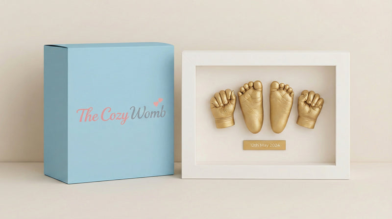 Each kit includes everything you need to create your keepsake: molding powder, casting material, stirring stick, step-by-step instructions, a custom-fit white frame, and a personalized plaque — all beautifully packaged and ready to gift.